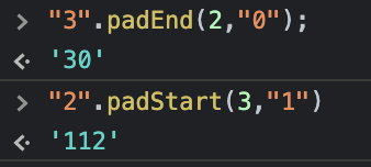 padStart()๋ string์ ์ธ ์ ์๋ function์ด๋ค.
