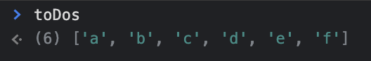 그래서 newToDo를 작성하고 form을 submit 할 때마다 newToDo를 toDos array (빈 array)에 그냥 push 하게 된다.