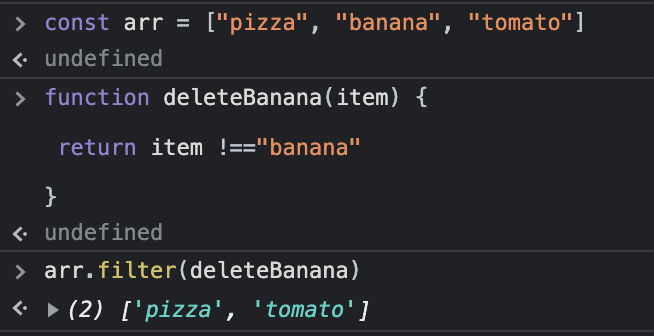 만약 banana를 지우고 싶으면 filter 식을 어떻게 세울까?